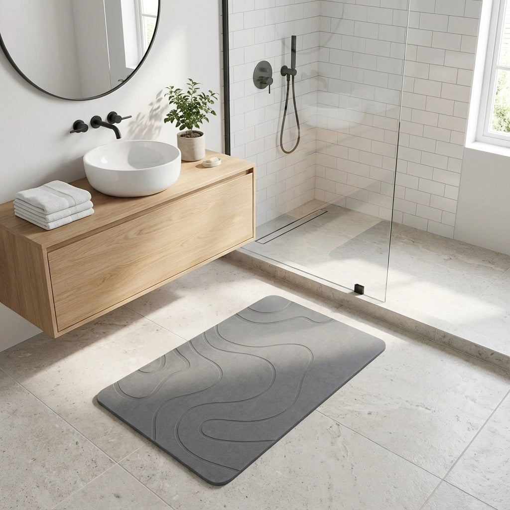 Step out of the shower onto dry stone — every time. Crafted from diatomaceous earth, this stone bath mat absorbs moisture instantly and dries in seconds, leaving no soggy fabric, no puddles, and no lingering damp smell.