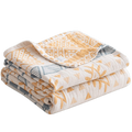 Soft 100% cotton muslin quilt with jacquard weave. Lightweight, breathable, and reversible—perfect as a summer quilt or cozy year-round sofa throw.