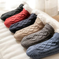 Keep your feet warm and stylish with these cable knit socks featuring soft fleece lining and cozy fuzzy trim perfect for winter days at home.