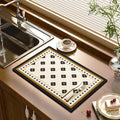 Vintage tile dish drying mat protects counters and absorbs water with decorative tile patterns, quick-dry microfiber material, and non-slip base for secure placement.