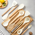 A modern, heat-resistant utensil set designed for everyday cooking, featuring smooth wooden handles, durable silicone heads, and a matching storage container to keep your kitchen organized and stylish.