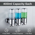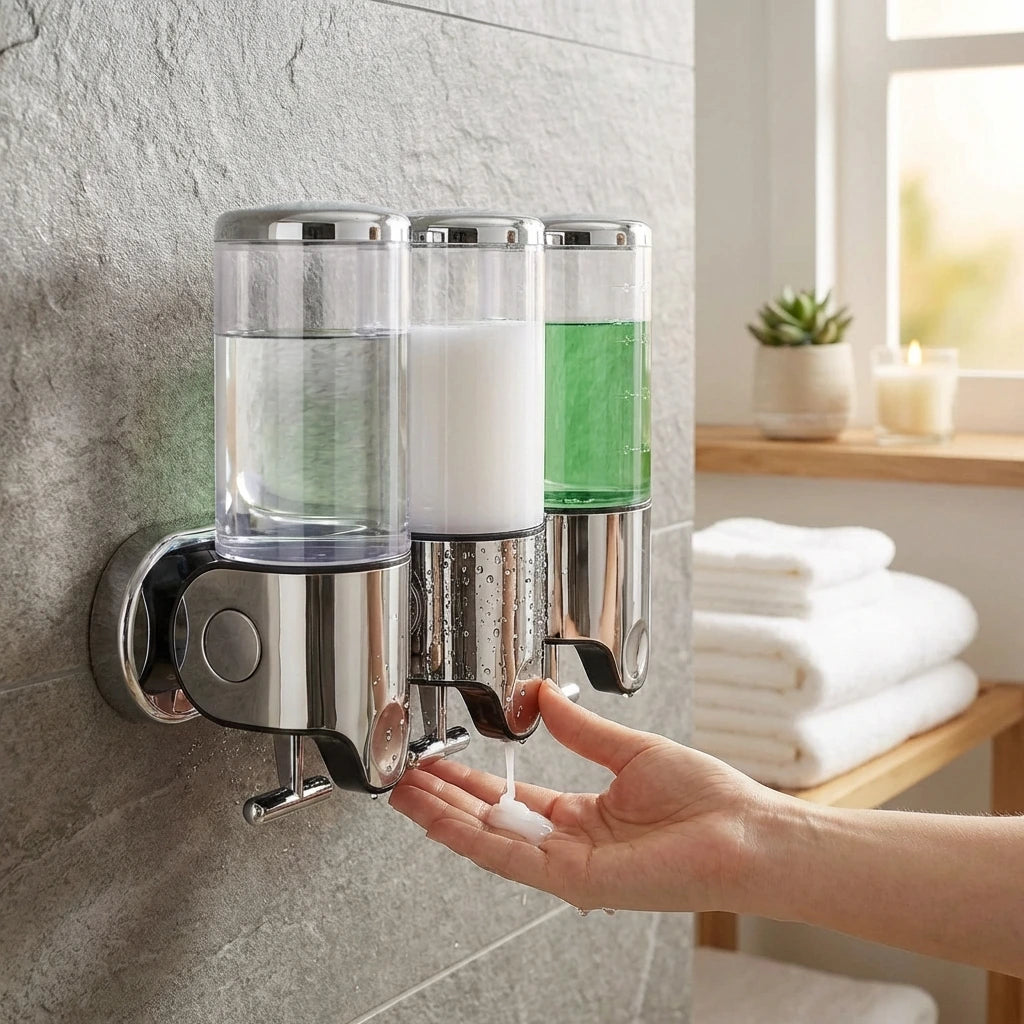 A sleek, hotel-style upgrade that keeps shampoo, conditioner, and body wash perfectly organized, mess-free, and always within reach.
