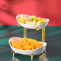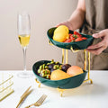 Keep fruits, snacks, and desserts beautifully displayed in this elegant ceramic bowl set with a sturdy metal stand.