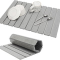 Instant-drying diatomite stone mat that absorbs water in seconds, keeps countertops spotless, and folds neatly for effortless kitchen organization.