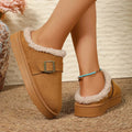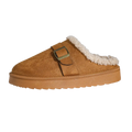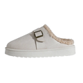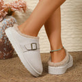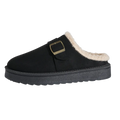 Women's fleece buckle cotton slippers with ultra soft sherpa lining and adjustable buckle strap. Perfect winter house shoes with non-slip sole.