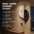 A premium dual-sided corner wall clock that blends modern design, silent precision, and night-glow elegance.
