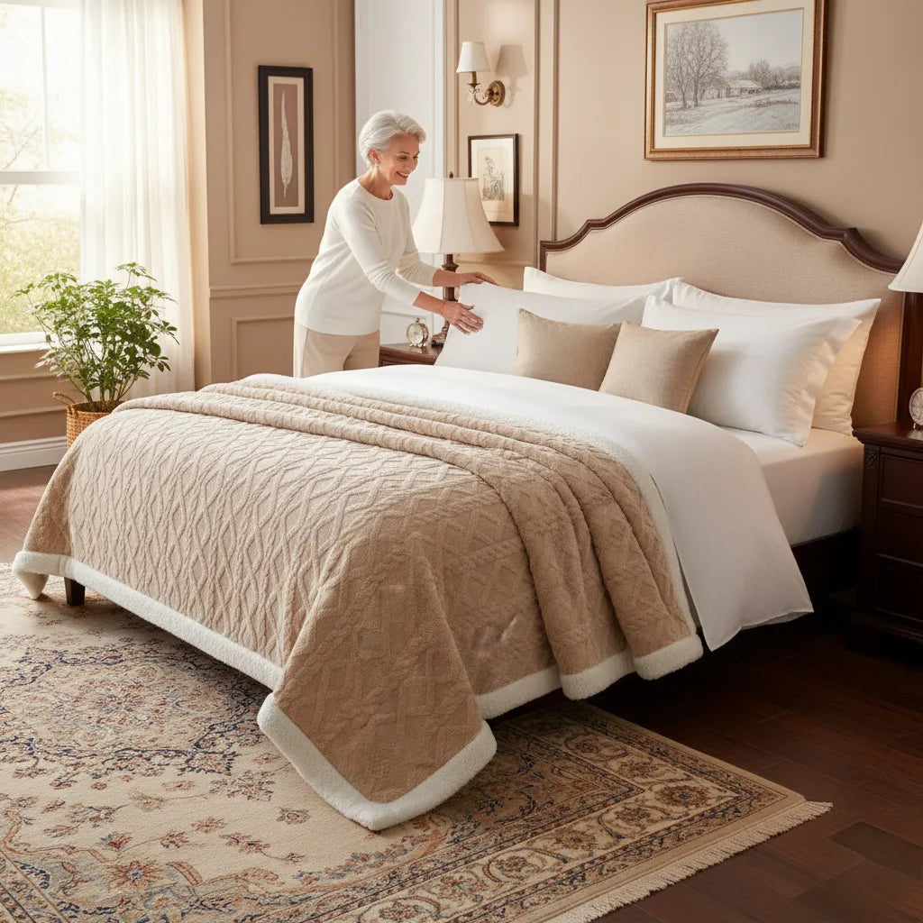 Our sherpa throw combines old-world craftsmanship with modern comfort technology. The result?