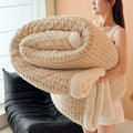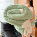 Ultra-plush double-sided blanket with waffle texture on one side and soft sherpa fleece on the other.