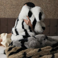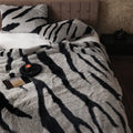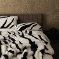 Zebra faux fur blanket with ultra-soft plush texture and bold animal print. Luxury throw for sofa or bed, cozy for winter nights, stylish for year-round décor.